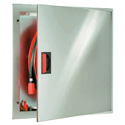 Carretel com armário, válvula manual, porta e aro de remate em aço inoxidável escovado, o modelo 3 INOX destina-se a montagem encastrada. O carretel é montado na porta que abre 180º permitindo que o enrolador seja facilmente removido durante a instalação para facilitar a montagem Ficha Técnica - Download |